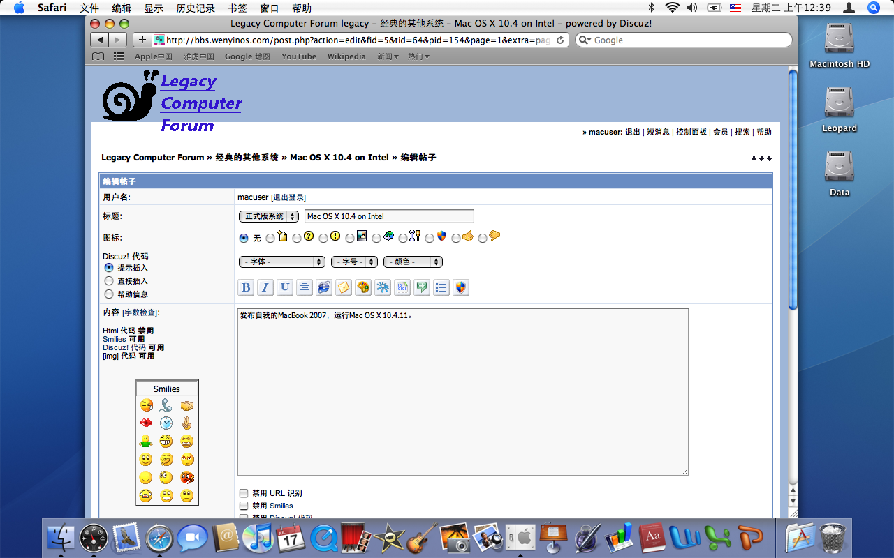 发布自我的MacBook 2007,运行Mac OS X 10.4.11。